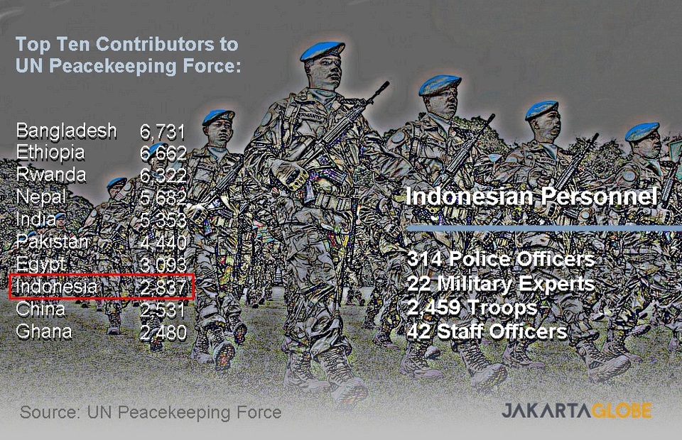 “Indonesia berada di peringkat kedelapan dari 119 negara yang berkontribusi pada misi penjaga perdamaian PBB,” kata Febrian Alphyanto Ruddyard, Direktur Jenderal Kerjasama Multilateral Kementerian Luar Negeri RI, dalam sebuah konferensi video, melansir Jakarta Globe.